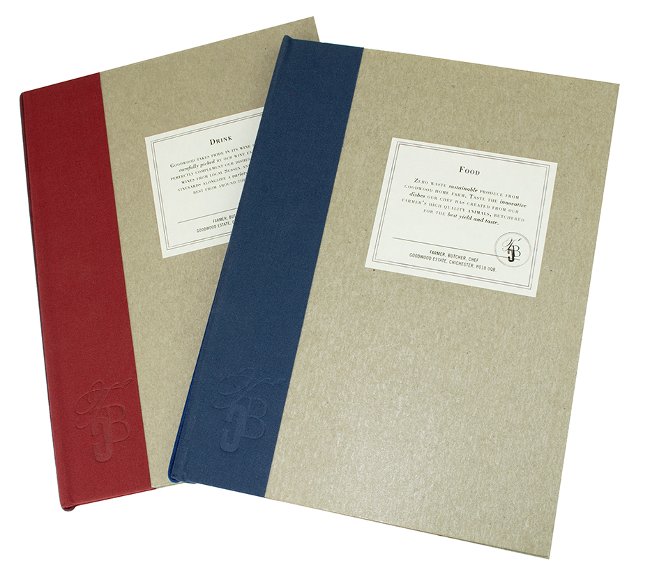 The menu’s binding cloth features a blind emboss of the restaurant logo that adds a quiet touch of elegance to its handcrafted charm.