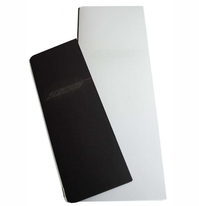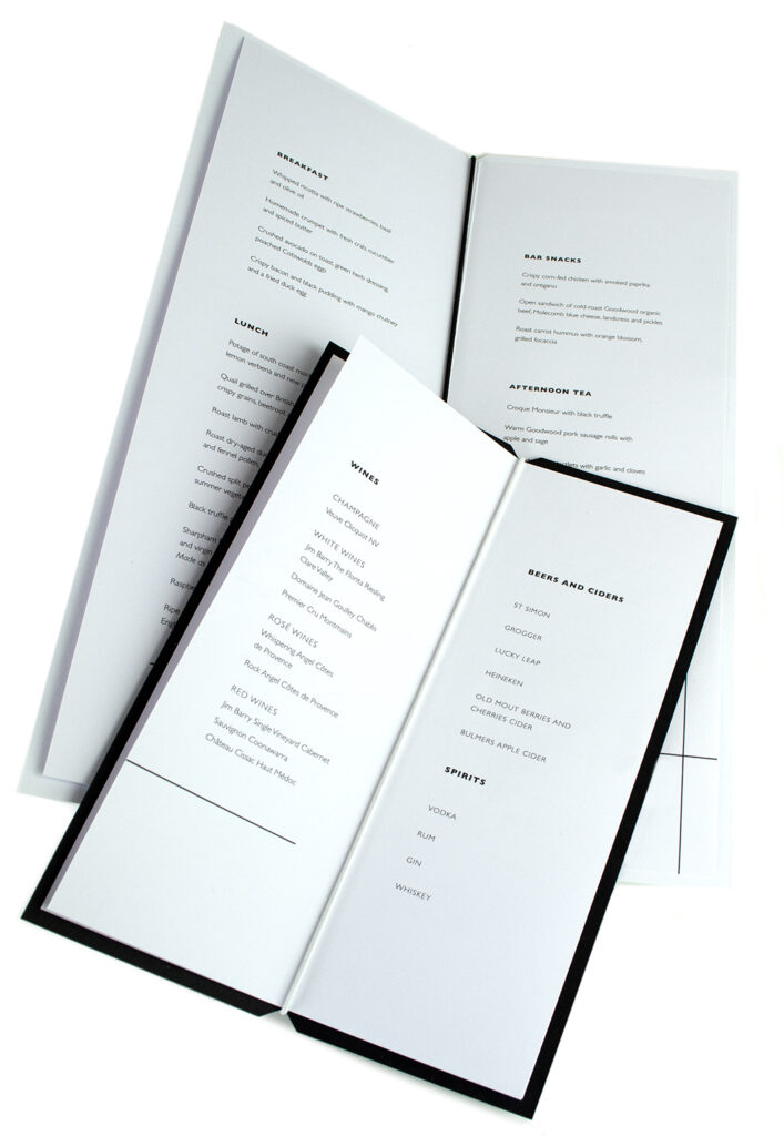 The perfect partner to the ‘White Frost’ food menu, is a tall and thin matching ‘Ebony’ colorplan menu. The pair look striking together as the drinks menu mirrors the slim silhouette, creating a coordinated set that feels effortlessly simple.